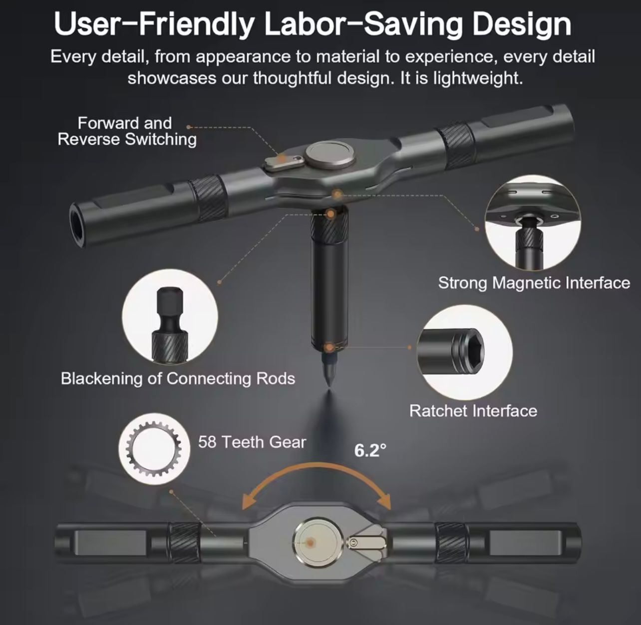 【Flexible Ratchet Design】: Adopts 6.2-degree ratchet, front and rear 58-gear ratchet structure design, torque 50N.m/50kgf, saving 80% of effort, and there is no need to adjust the wrist position; In addition, it can be flexibly disassembled and combined, the use can be converted, and it can be used as a screwdriver or a small wrench, very convenient and practical.